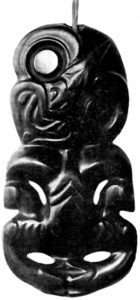 Manaia: es un colgante que representa a una criatura mitológica para los maoríes, la cual tenía la cabeza de un pájaro, la cola de un pez y el cuerpo de una persona. Se creía que este ser comunicaba el mundo terrenal y el mundo de los espíritus. De esta forma, el Manaia era utilizado como un símbolo contra el mal, que protegía al usuario de las desgracias.